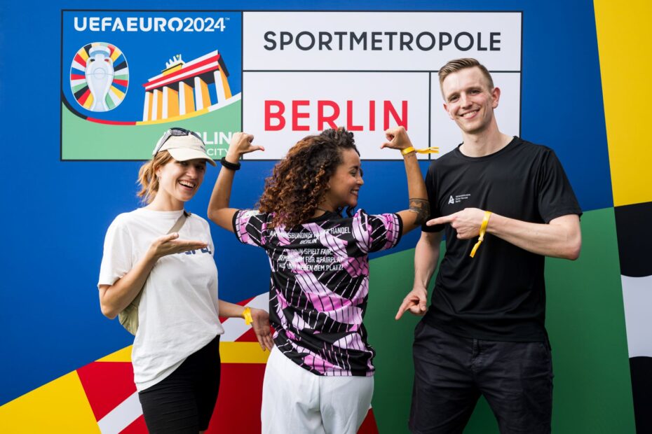 Während der EURO haben wir unermüdlich und mit vielfältigen Maßnahmen immer wieder den Fairen Handel in Spiel gebracht – ob in den Medien, in der U- und S-Bahn, bei Politiker:innen des Berliner Abgeordnetenhauses oder bei den Besucher:innen der Fanmeile.