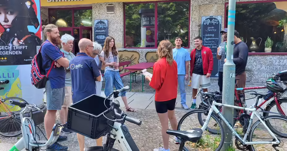Die Fahrrad-Rundtour „Spurensuche durch Friedrichshain-Kreuzberg: mit dem (E-)Bike vom May-Ayim Ufer bis zu Fair Fashion“ startet am Lausitzer Platz und führt zu weniger bekannten Ecken Kreuzbergs, an denen faire Arbeitsbedingungen entlang globaler Lieferketten, Klimaschutz sowie die Aufarbeitung kolonialer Strukturen im Stadtbild ihren Platz gefunden haben.